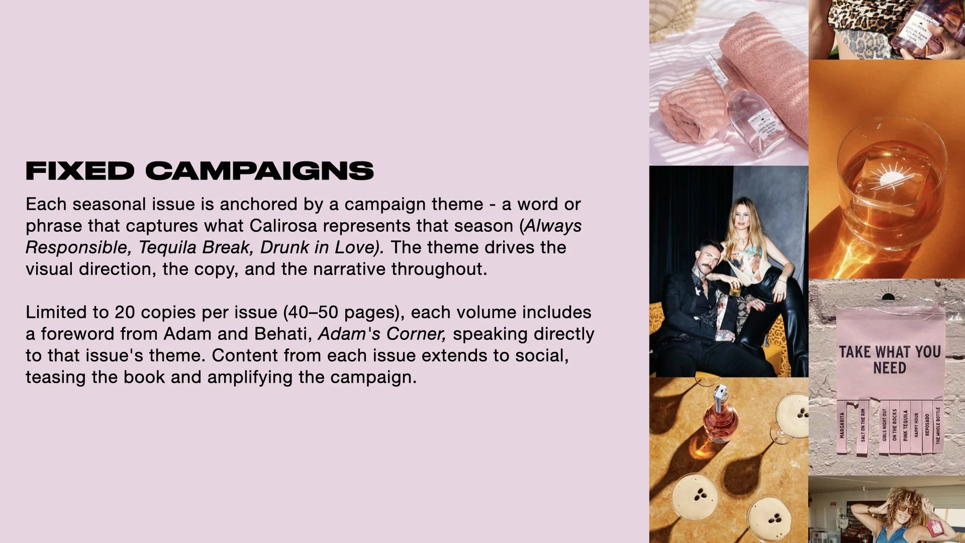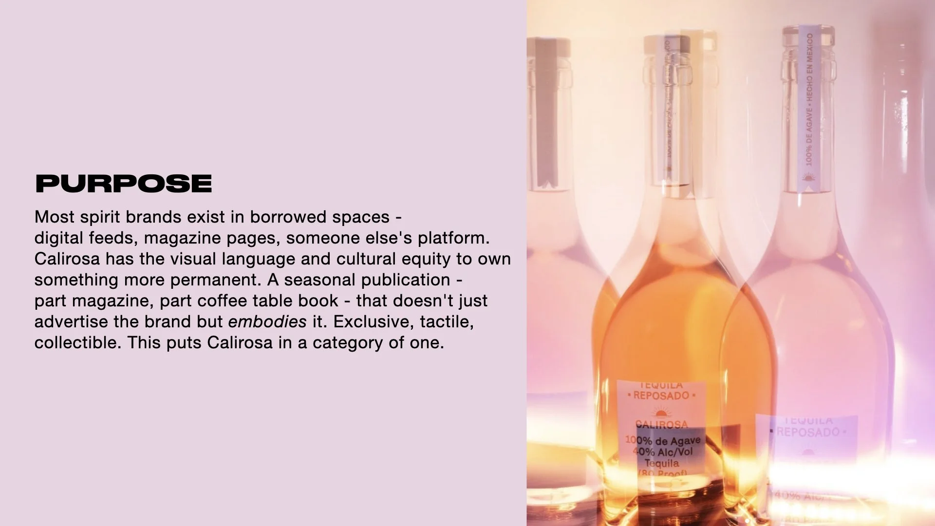 Most spirit brands rent their audience's attention. This concept was built around Calirosa owning it - a seasonal publication that transforms the brand's existing visual world into something collectible and culturally relevant. The goal was to move Calirosa primarily out of the spirits category and into the lifestyle conversation.